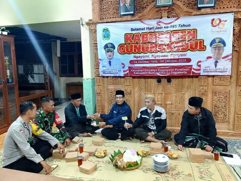 - Menyelenggarakan Malam Tirakatan di tingkat Kapanewon, Kalurahan dan Kelompok Masyarakat dengan melibatkan semua lapisan masyarakat pada tanggal 3 Oktober 2025. Dengan membacakan Sejarah singkat Kabupaten Gunungkidul. (Teks terlampir)